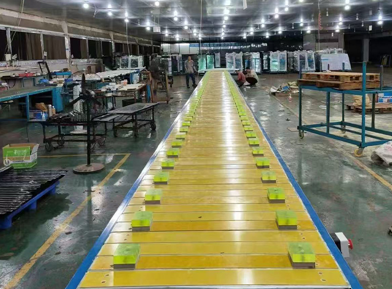 链板线稳定可靠:链板输送线采用链条驱动,具有稳定的运行特性。它的输送面平整,物料不易倾倒或堆积,保证了输送的稳定性和连续性。